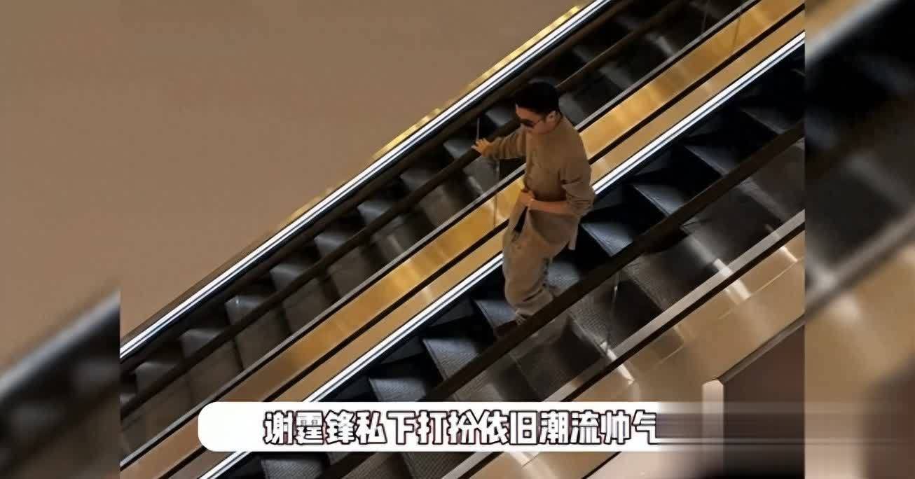 谢霆锋人到中年,依旧时髦,穿着一身休闲装,戴着墨镜,步伐非常快的走在前面。