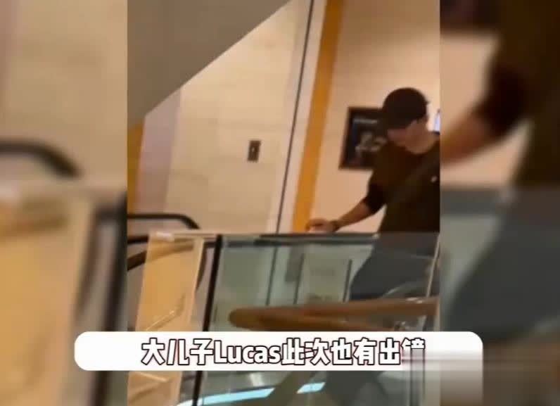 而大儿子谢振轩带着棒球帽跟在后面,身高看起来跟谢霆锋差不多。